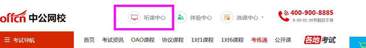 ① 打開中公網(wǎng)校首頁m.njjrgdgc.com ,點擊中間顯示的"聽課中心",如圖: