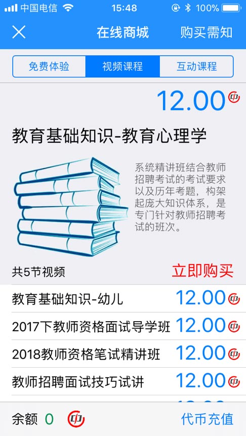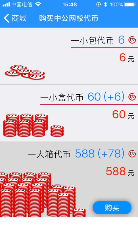 用戶可以通過App內購來獲取中公網校代幣并自助購買課程。代幣方式支付的課程不支持退費,如有課程選購需求,建議登錄m.njjrgdgc.com選購課程。