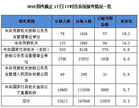 【截至17日17時】2016國考報名14萬 最熱職位競爭比888:1