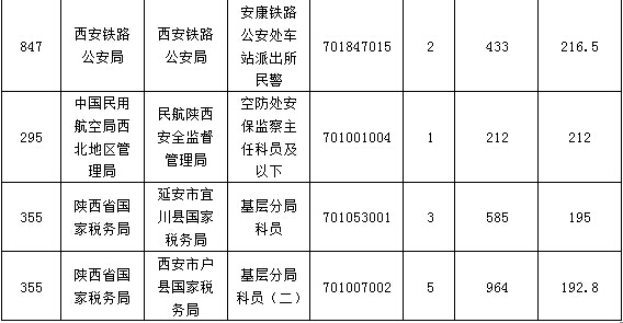 報名人數較多的職位主要集中在陜西省國家稅務局、中國民用航空局西北地區管理局、西安鐵路公安局等部門,具體信息如下: