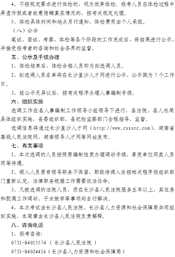 2015湖南長沙縣人民法院選調5人公告