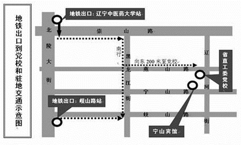 乘地鐵,可在遼寧中醫大學站下車,步行兩站到省直屬機關工委黨校。