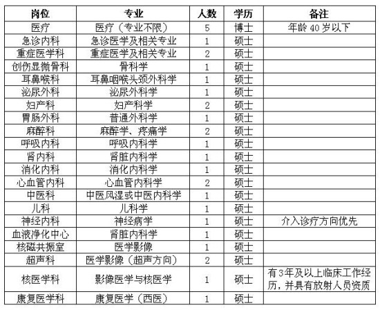 4、具備全日制碩士研究生及以上學(xué)歷(含2016年應(yīng)屆畢業(yè)生),臨床專業(yè)要求第一學(xué)歷為全日制臨床醫(yī)療專業(yè)本科;年齡30周歲及以下(1986年1月1日及以后出生),特殊急需崗位年齡適當(dāng)放寬;有工作經(jīng)歷者,要求具備二級以上醫(yī)院工作經(jīng)歷。