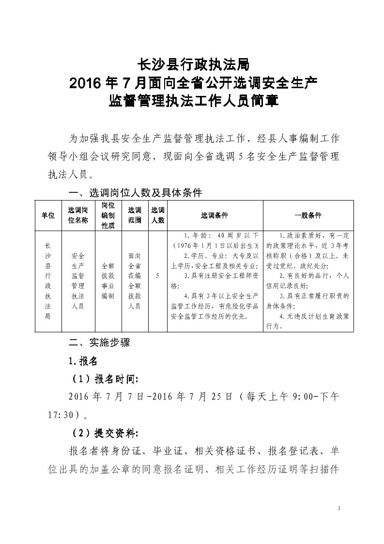 2016湖南長沙縣行政執法局選調安全生產監督管理執法人員公告【5人】