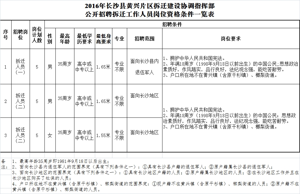 原標題:長沙縣黃興片區拆遷建設協調指揮部關于公開考試招聘征地拆遷工作人員實施方案