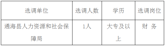 2016云南通海縣人力資源和社會局選調1名財務人員公告