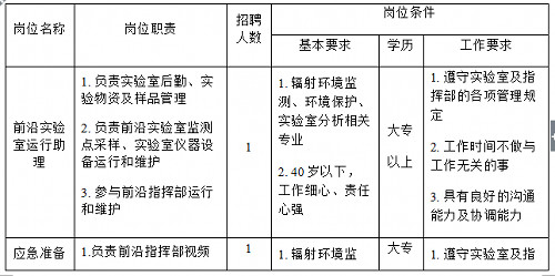 環境保護部核與輻射安全中心作為環保部直屬事業單位,是我國專業從事核安全與輻射環境監督管理技術的公益性事業單位?,F根據工作需要,擬在延邊自治州公開招聘2名技術人員。具體招聘信息如下: