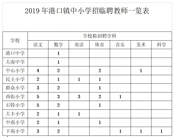原公告:港口鎮招聘60名中小學臨聘教師!
