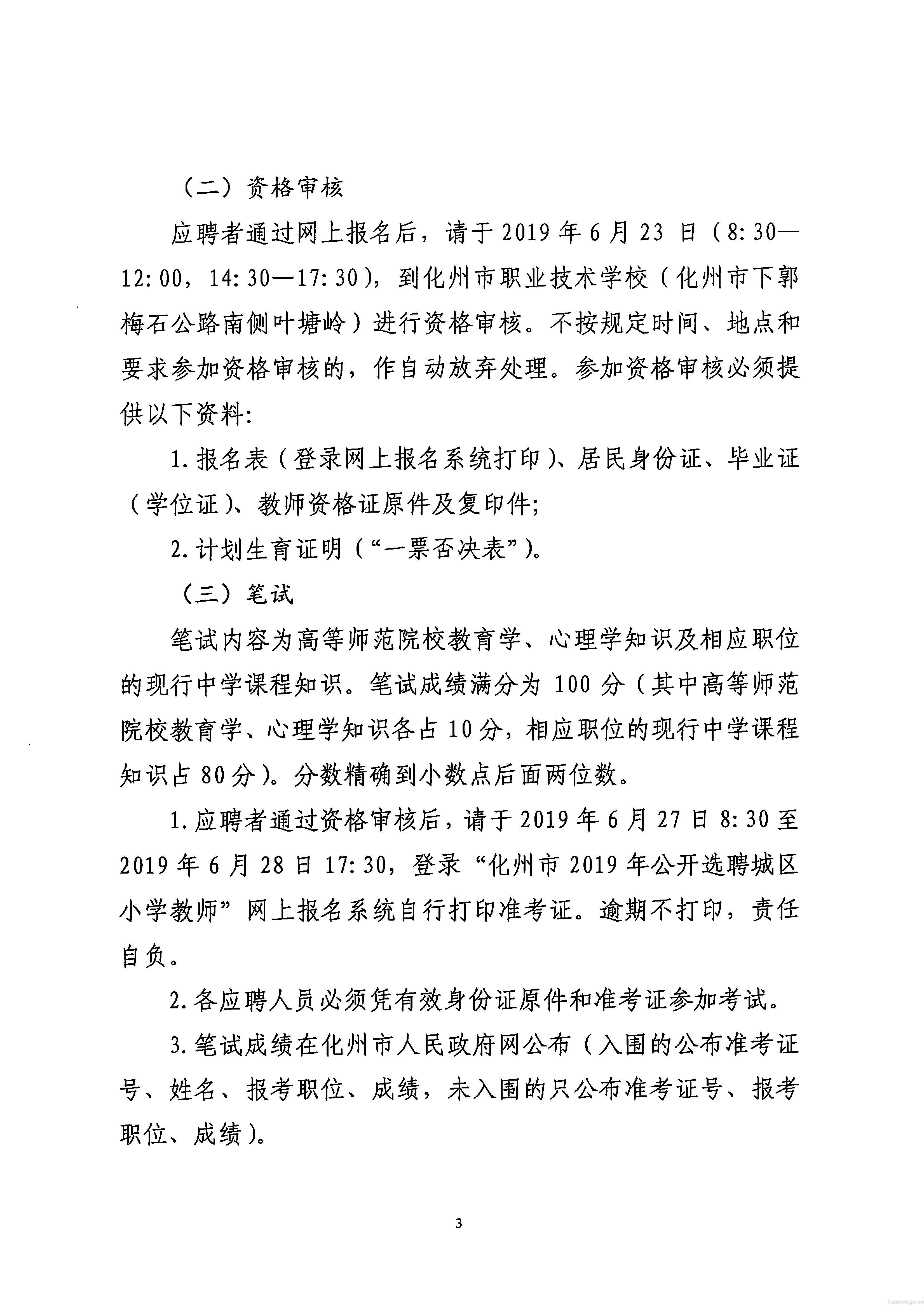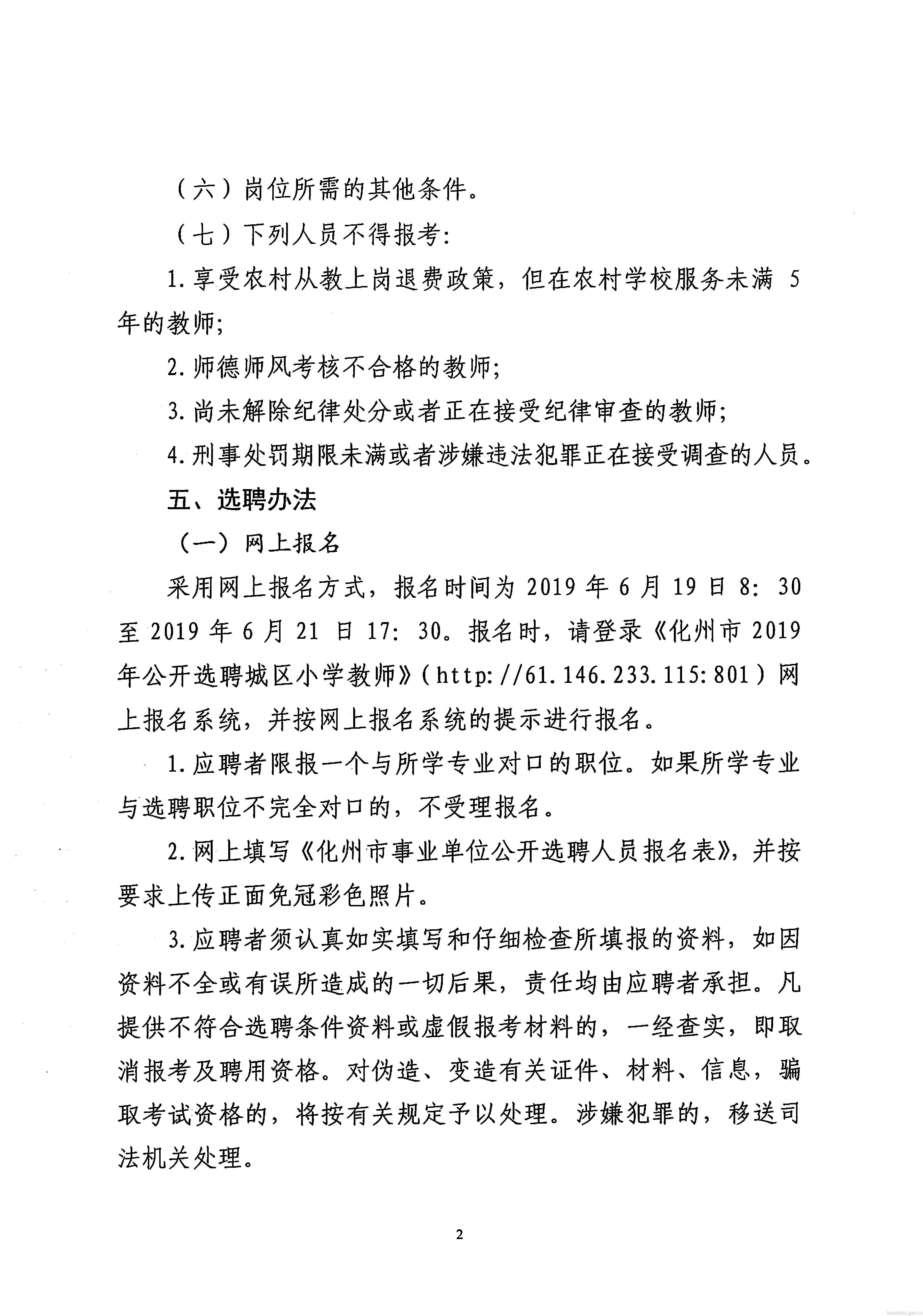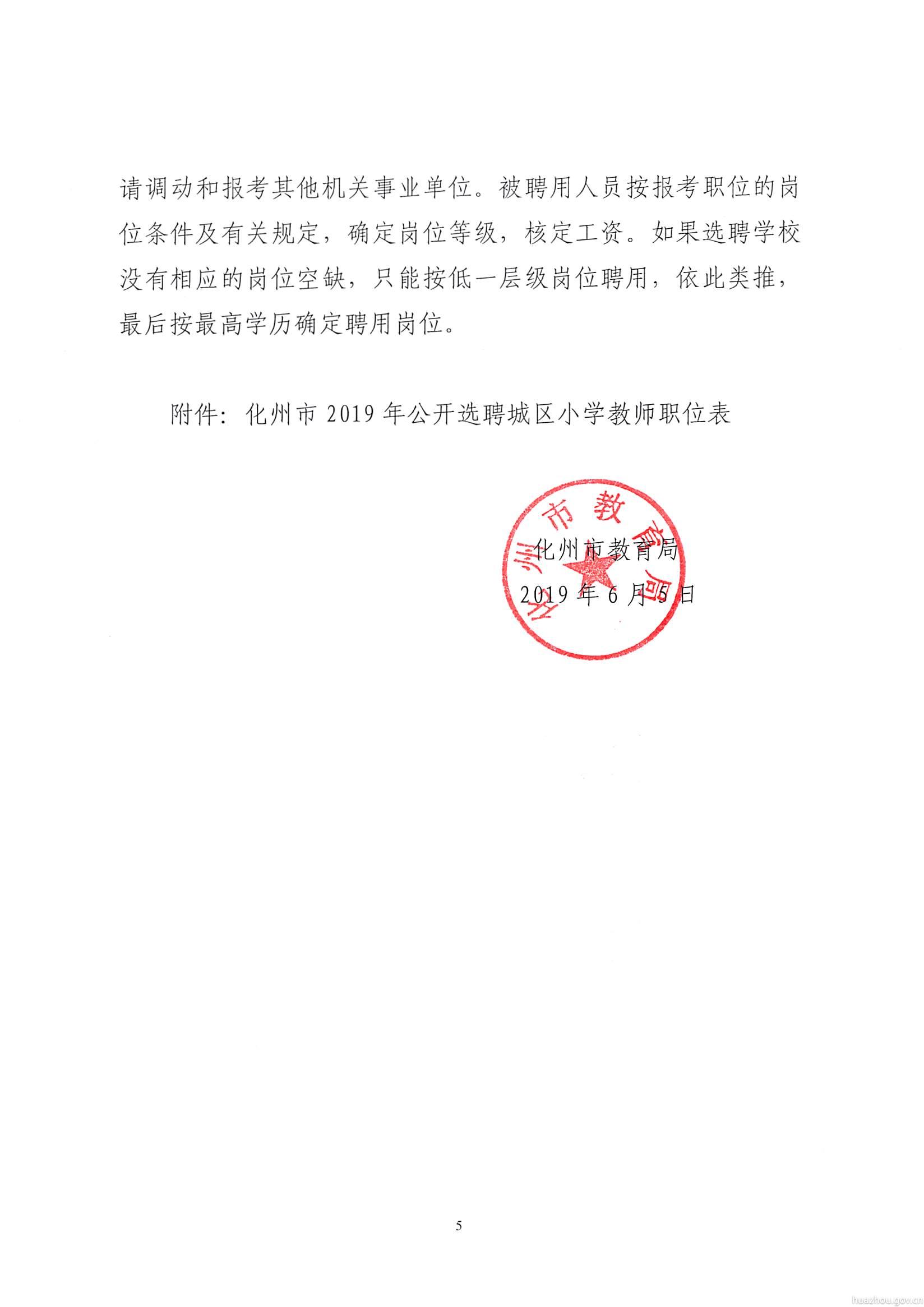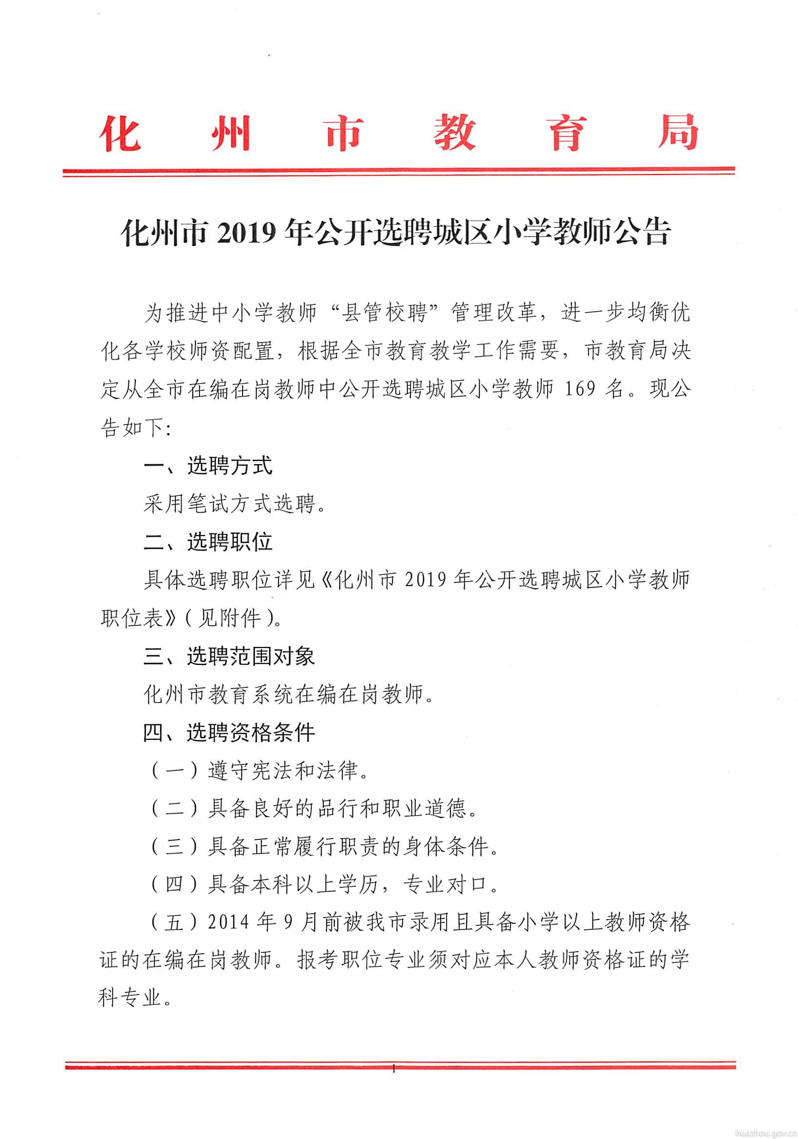 原公告:化州市2019年公開(kāi)選聘城區(qū)小學(xué)教師公告