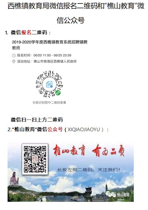 由西樵鎮教師招聘工作領導小組統一在“樵山教育”微信公眾號及西樵鎮教育局公示系統公布本招聘公告。