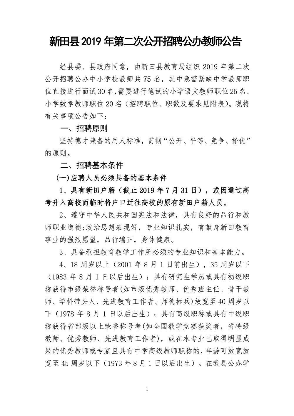 2019湖南新田縣招聘公辦教師公告【招75人】