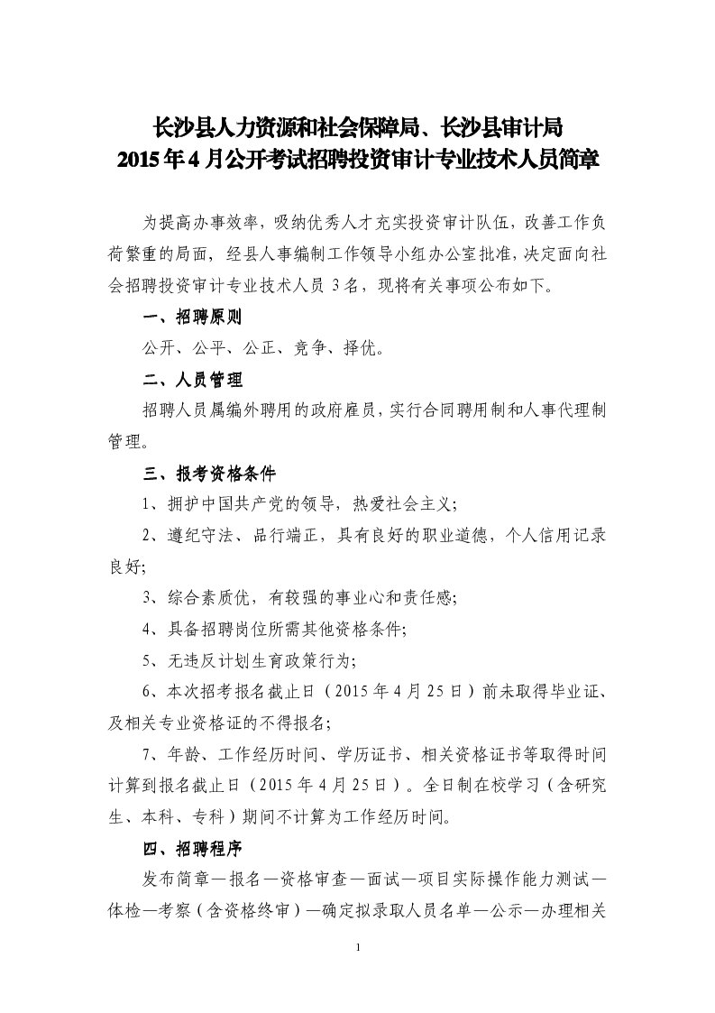 2015年4月湖南長(zhǎng)沙縣人力資源和社會(huì)局、長(zhǎng)沙縣審計(jì)局招聘3人公告
