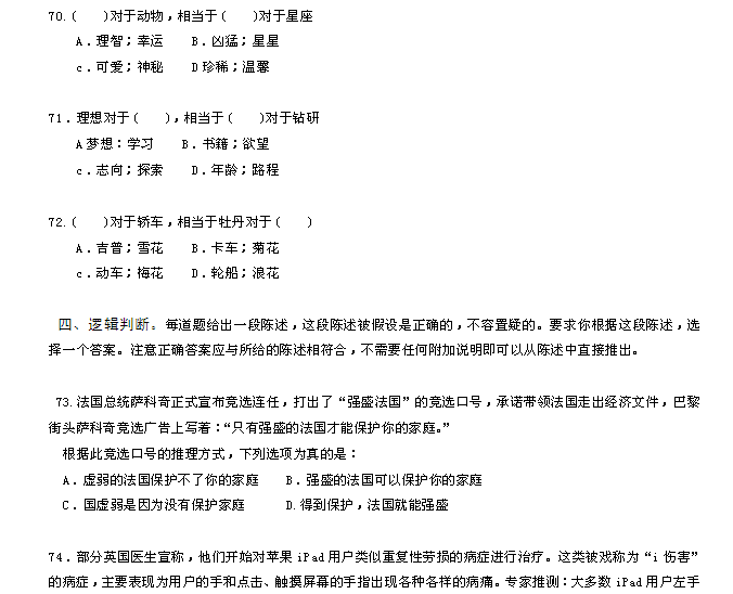 2012年山西公務員《行測》