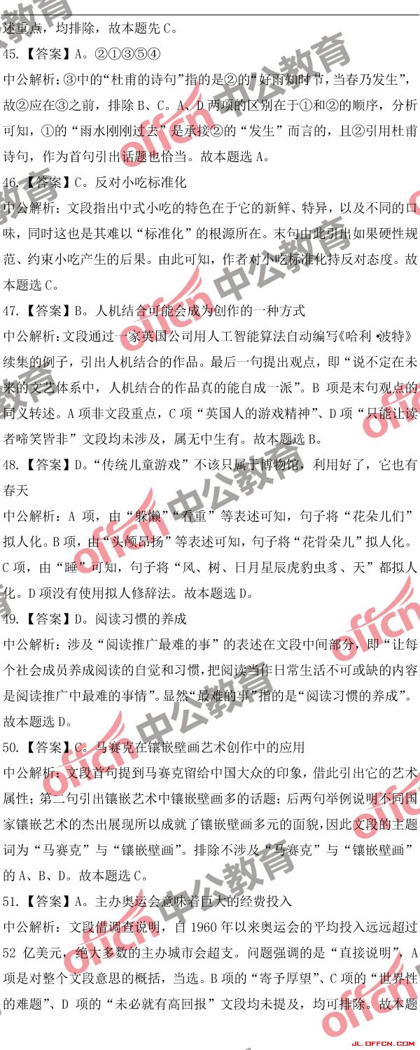 2018吉林公務員考試行測(甲)歷年參考答案及解析