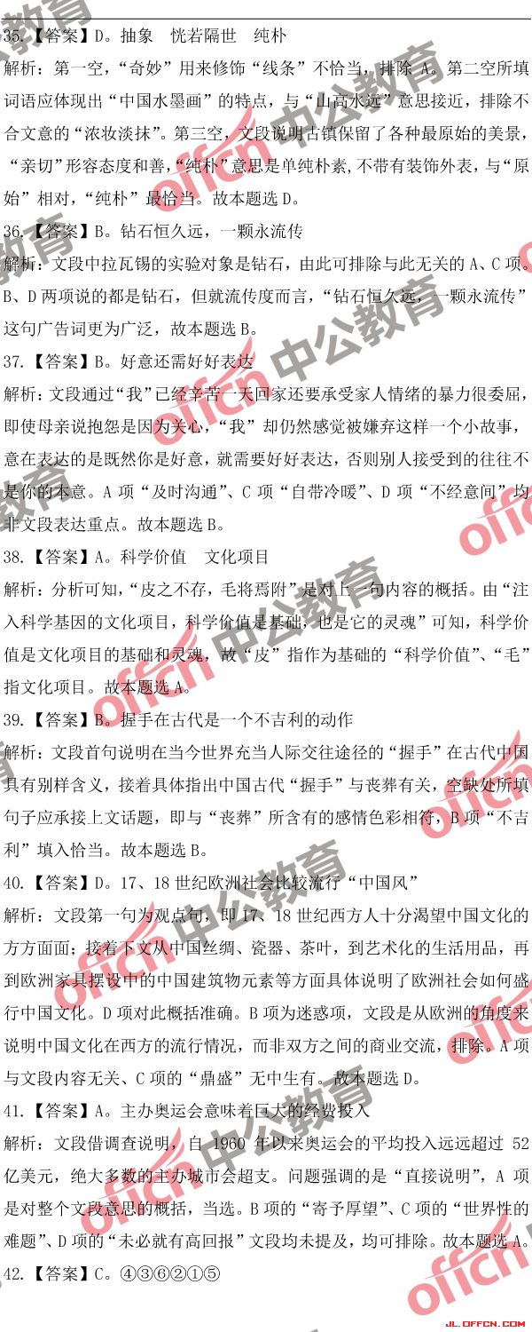 2018吉林公務員考試行測(乙)歷年參考答案及解析(6)[/page]