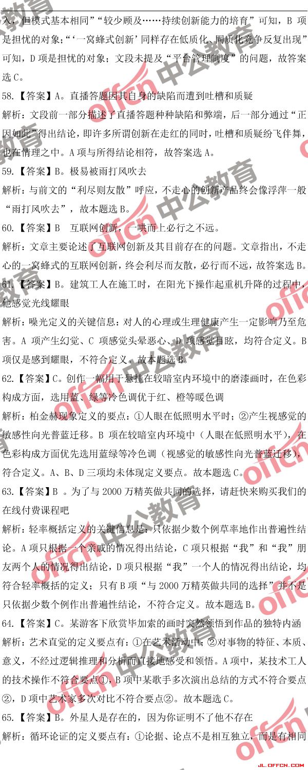 2018吉林公務(wù)員考試行測(乙)歷年參考答案及解析
