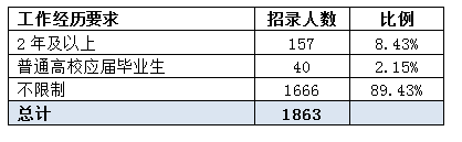 通過對基層工作經驗的分析,中公網校專家發現,招錄計劃中的1706人不要求工作經歷,占到總人數的91.57%,其中有40人只招錄高校應屆生,應屆生們要重點考慮這類職位,縮小競爭對手范圍,概率。