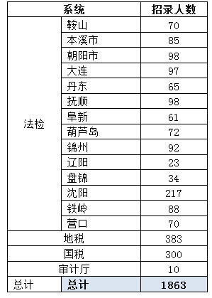 2016年3月25日,遼寧公務員考試公告發布,同時,招錄計劃職位表、公共科目筆試大綱以及報考指南等重要考試信息一并發出,定于4月23日進行筆試,于2016年3月27日9時至3月30日24時期間進行網上報名。本次招錄計劃職位按照各系統進行發布,其中法檢系統是本次考試的招錄大戶,招錄1170人,其次為地稅系統招錄383人,國稅系統招錄300人,審計廳10人,此外還面向公安院校公安專業2016年應屆畢業生招錄960人,因為此項招錄計劃僅面向公安院校的應屆畢業生發布,不向社會發布,因此,以下分析均不包含該項數據。