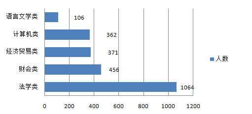 本次招錄法檢系統是招錄大戶,主要招錄有法律教育背景的人才,因此,法學類專業成為本次招錄中人氣的專業,共招錄1064人,其次是財會類專業,招錄456人,經濟貿易類與計算機類專業基本持平,有這些專業背景的考生在選職位時范圍比較廣,機遇較多。